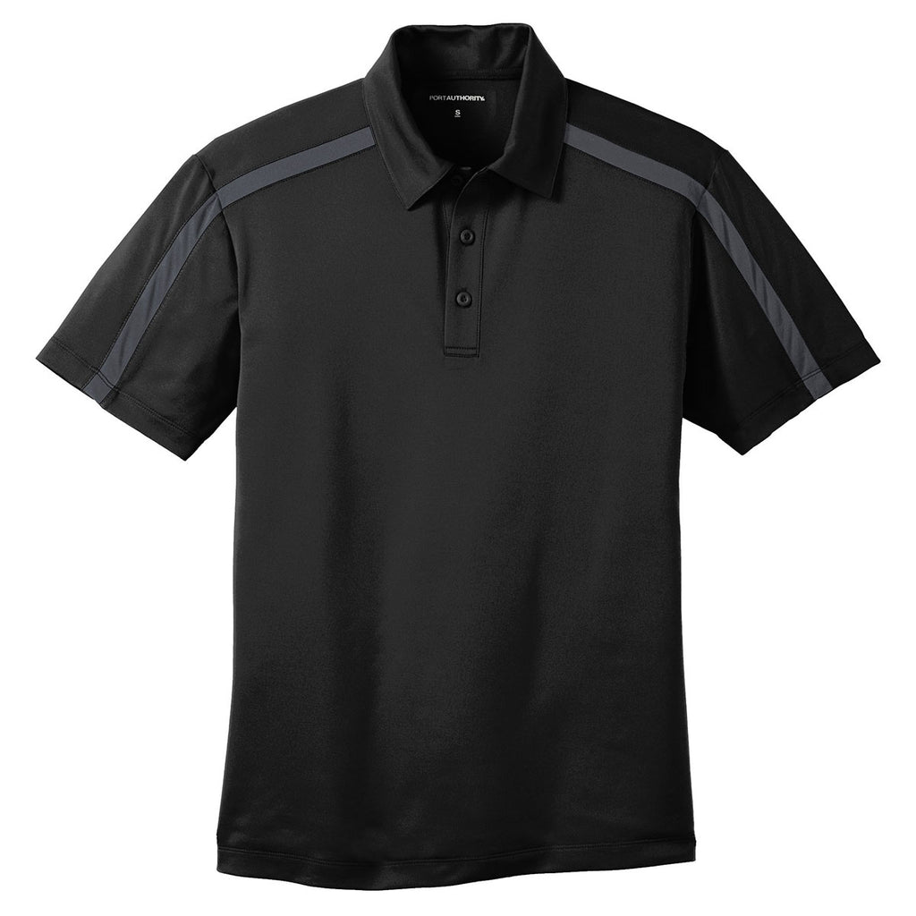 Port Authority Men's Black/Steel Grey Silk Touch Performance Colorblock Stripe Polo