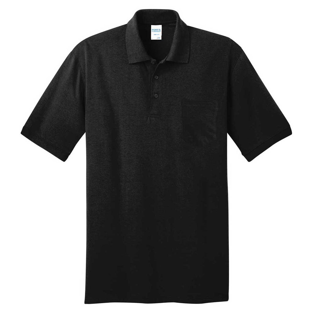 Port & Company Men's Jet Black Core Blend Jersey Knit Pocket Polo