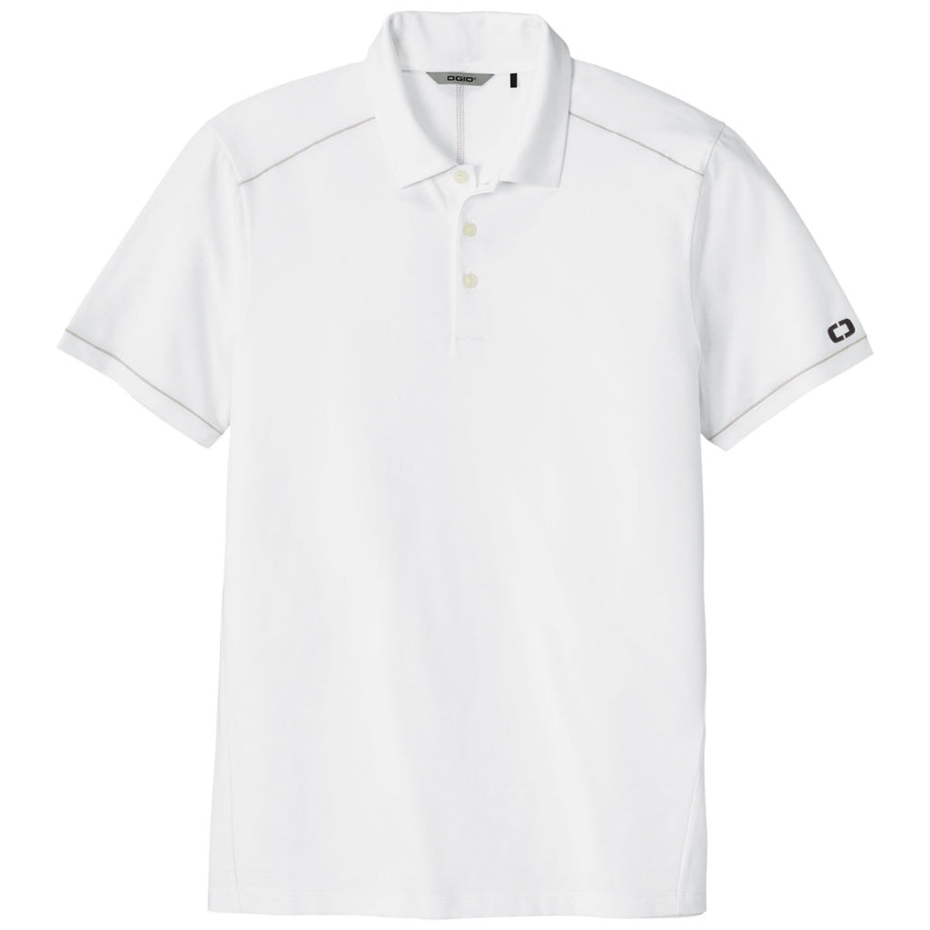 Enjoy a modern look with embroidery on your OGIO Men's Bright White Code Stretch Polo. This polo is meant to bring flexibility to your day with the lightweight cotton poly knit that has stretch and moisture wicking for whatever is on the schedule. Add a company logo to use as a corporate uniform or something special for employee events. The three button collar, reflective silver tape with coverstitch detail, and contrast stitching help you stand out in this polo. Whether you are spending the day in the office or playing an extra round of golf, this polo is a true must have.