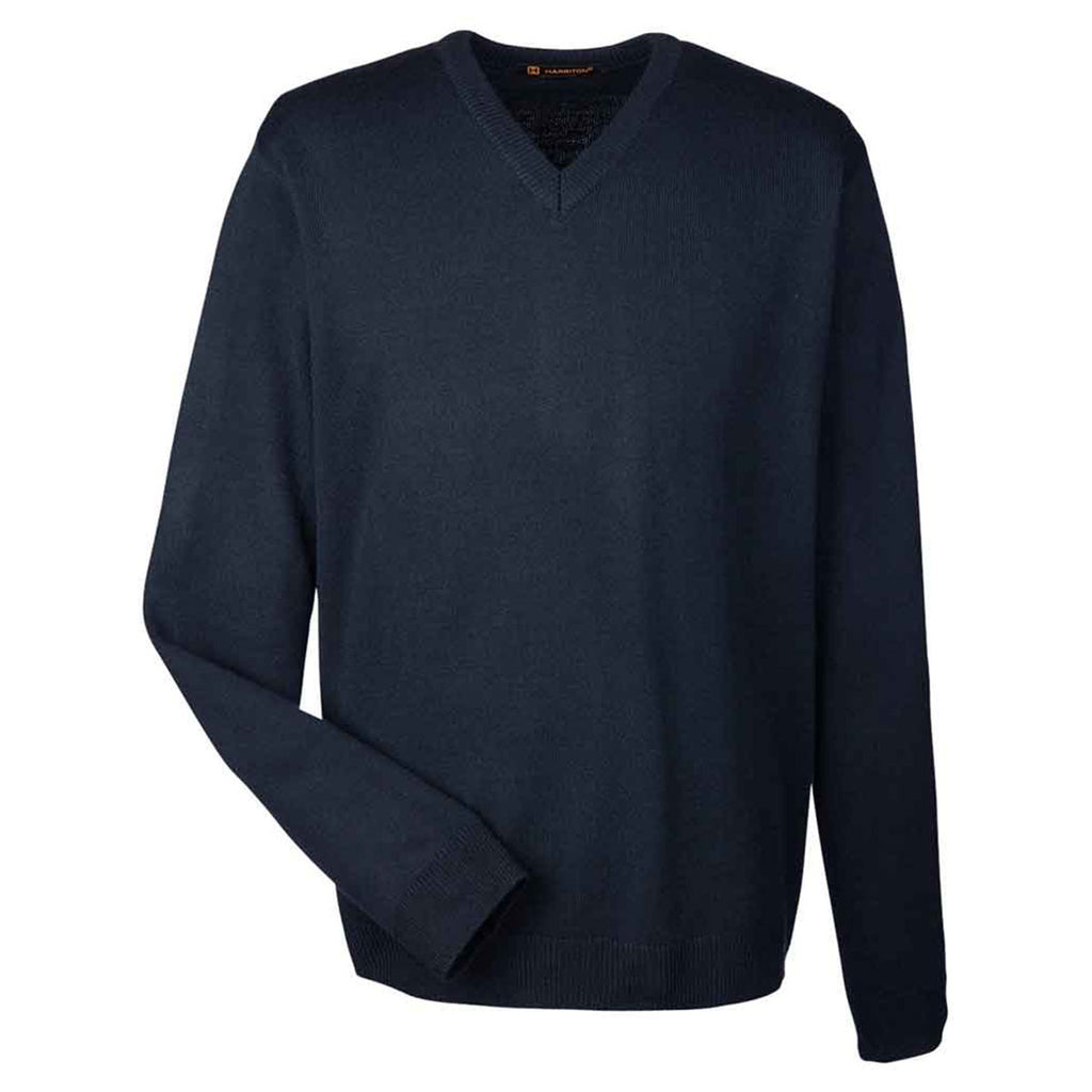 The Harriton Men's Dark Navy Pilbloc V-Neck Sweater represents the ultimate corporate gift for thanking the loyal customers of your business. Turn the super soft sweater into a marketing tool by adding a custom logo that potential customers instantly recognize. Logoed corporate apparel makes outstanding gifts for your dedicated team of employees. One-hundred percent acrylic and the anti-pill performance ensure the sweater never rips and tears on sharp objects. The sweater exudes high-end fashion at the office, as well as after work at a local outdoor concert. Enjoy the sleek rib knit armhole and neckline that exude panache.Corresponding Women's Style:Harriton Women's Dark Navy Pilbloc V-Neck Sweater