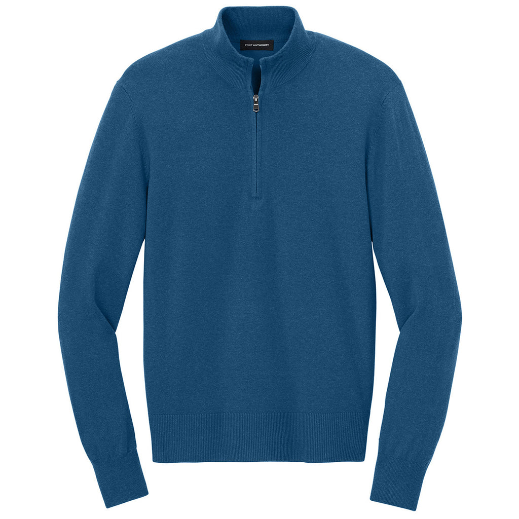 Port Authority Men's Aegean Blue Heather Easy Care 1/4-Zip Sweater
