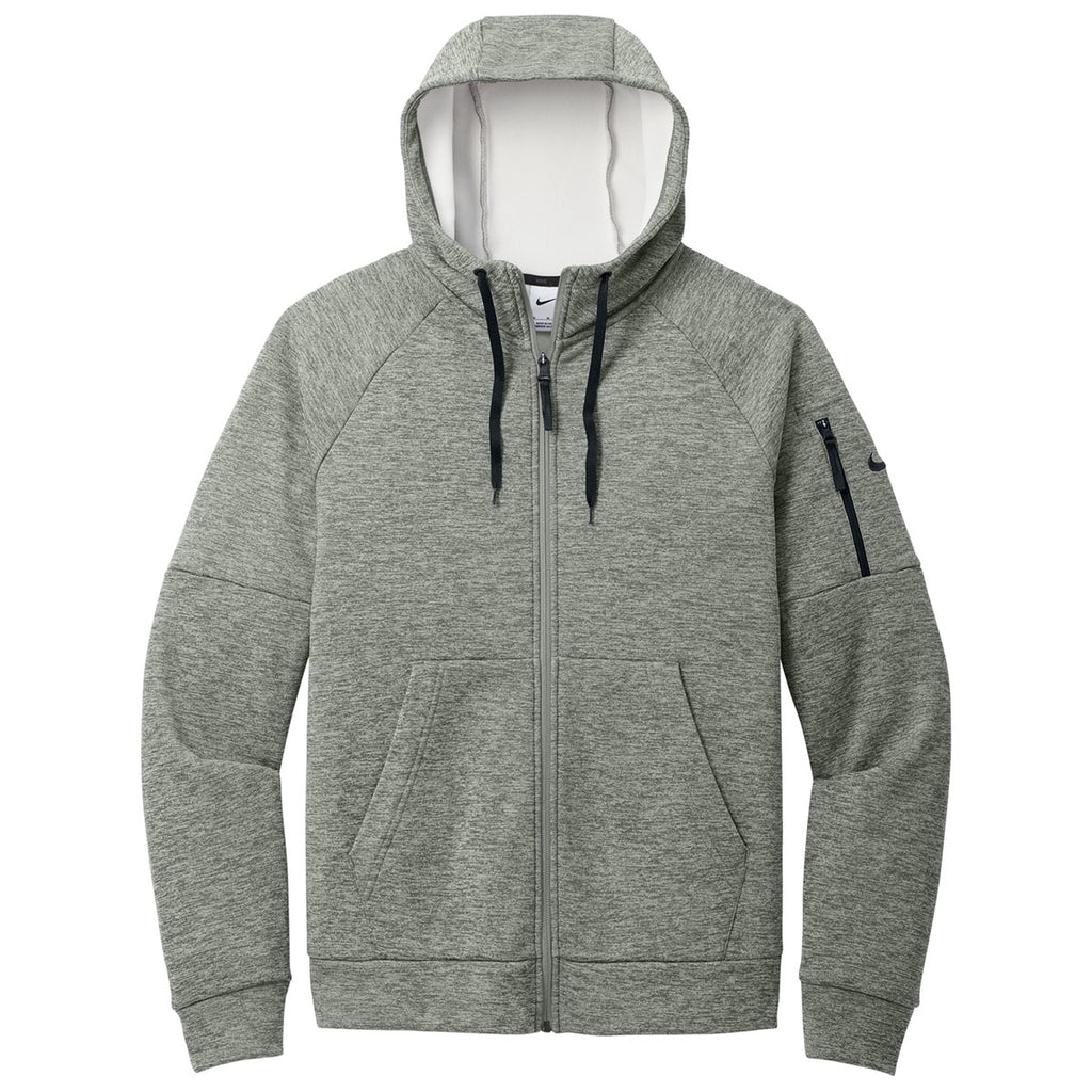 Nike Men's Dark Grey Heather Therma-FIT Pocket Full-Zip Fleece Hoodie