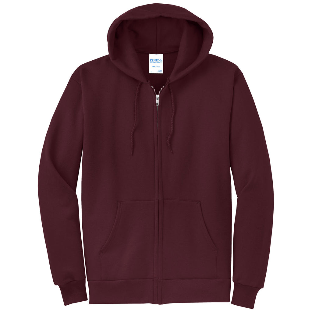 Port & Company Men's Maroon Core Fleece Full-Zip Hooded Sweatshirt