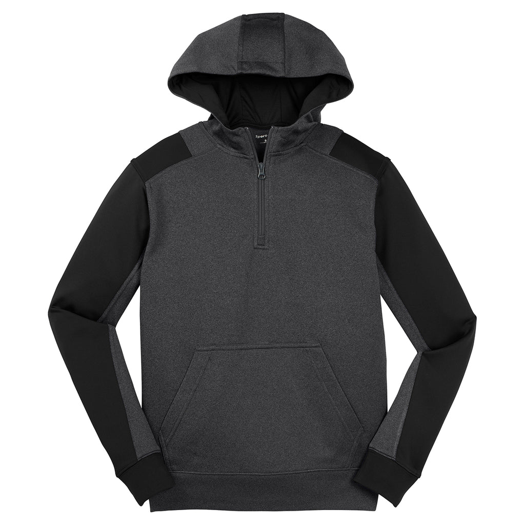Sport-Tek Men's Graphite Heather/Black Tech Fleece Colorblock 1/4-Zip Hooded Sweatshirt