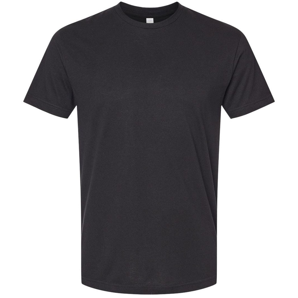 The LAT Men's Blended Black Fine Jersey Tee is the perfect canvas for your company's custom logo. This basic shirt comes in an assortment of colors and features a large cotton fine jersey body that is conducive for displaying a corporate logo or emblem. The ribbed collar adds a ringed look while producing a better grip on the wearer's skin. This shirt is a great choice for casual company uniforms or for company giveaways. It also works well at recruiting events and can be suitable for a company athletic event if desired. Combined with your brand's logo, this shirt is the perfect way to spread the word about your company.Highlights