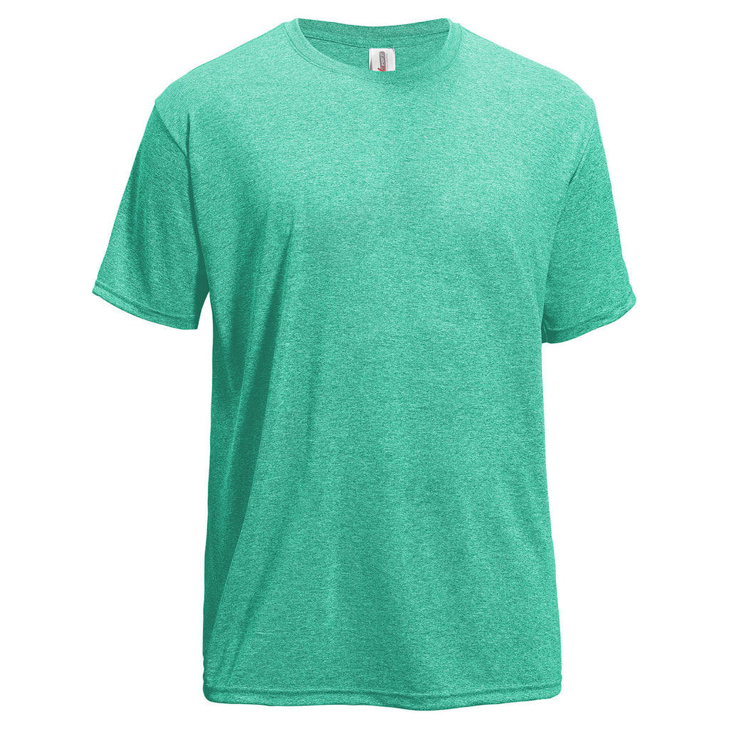 If donning a plain t-shirt makes you a bit dull and you're looking for a breathable texture, look no further than Expert Men's Heather Kelly Performance Tee. Whether you want to hang out in during the dog days or want to look stellar with a performance-driven top for your active lifestyle, this Heather tee should be your most-appropriate pick. It wicks away sweat and is equipped with BodyFreshe to inhibit odor causing bacteria. Crafted from cationic disperse Heather micro polyester. With our advanced customization services, this tee can sport your company's logo or message just the way you want.The minimum order for this product is 12 pieces.