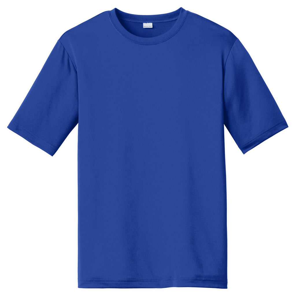 Do moisture laden t-shirts bog you down whenever you need to ramp up the competitive juices? Sport-Tek Men's True Royal PosiCharge Tough Tee contain moisture wicking technology that quickly evaporates perspiration the instant it forms on your skin. The result is a cooling of the skin that invigorates your body. Set-in sleeves allow for more arm movement, which comes in handy on the golf course and tennis court. The super soft fabric endures countless wash and dry cycles, without any of the colors fading. One-hundred percent rugged polyester interlock resists rips and tears. Attach your company logo to the t-shirts to spread the word about your brand.Corresponding Women's Style: Sport-Tek Women's True Royal PosiCharge Tough Tee