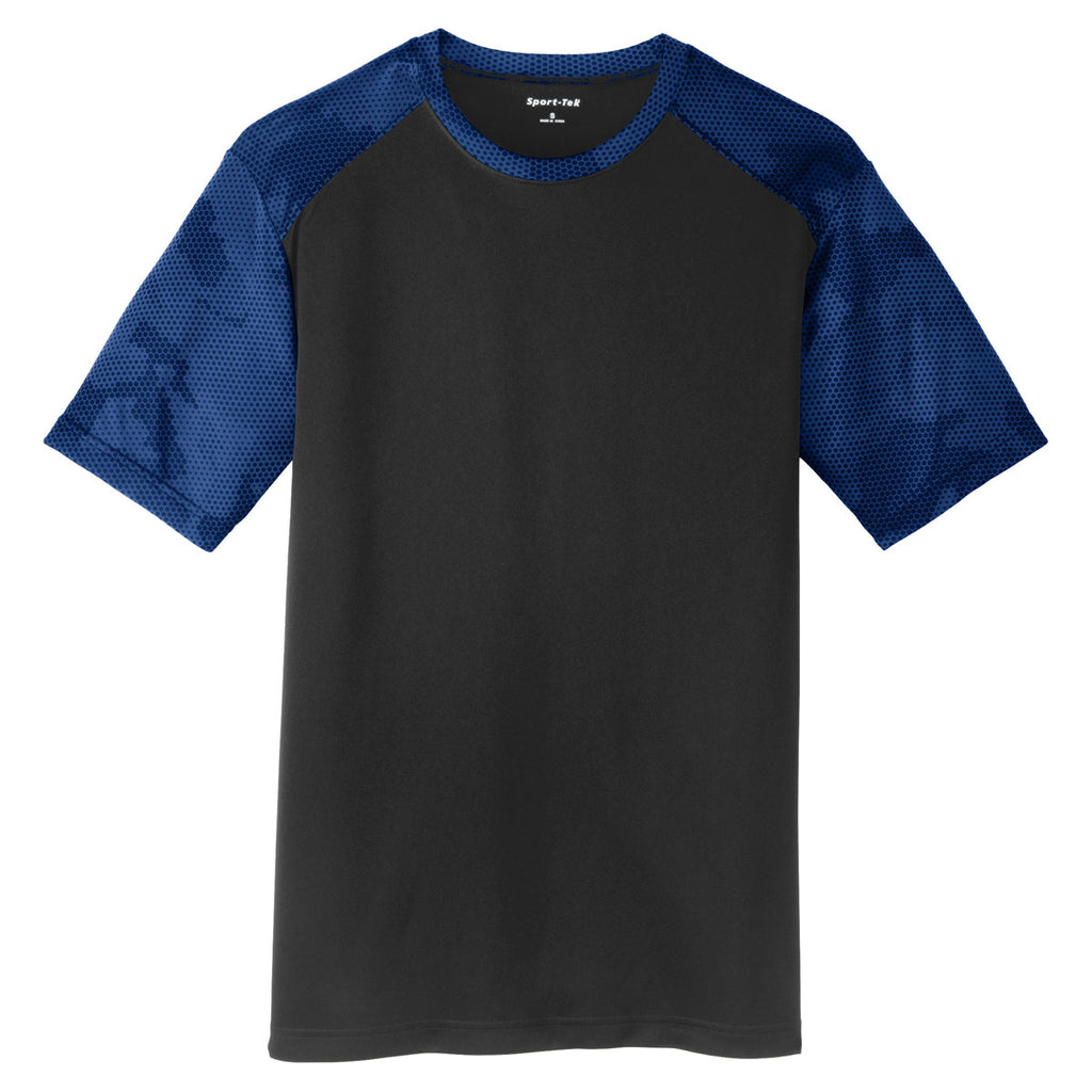 Sport-Tek Men's Black/True Royal CamoHex Colorblock Tee