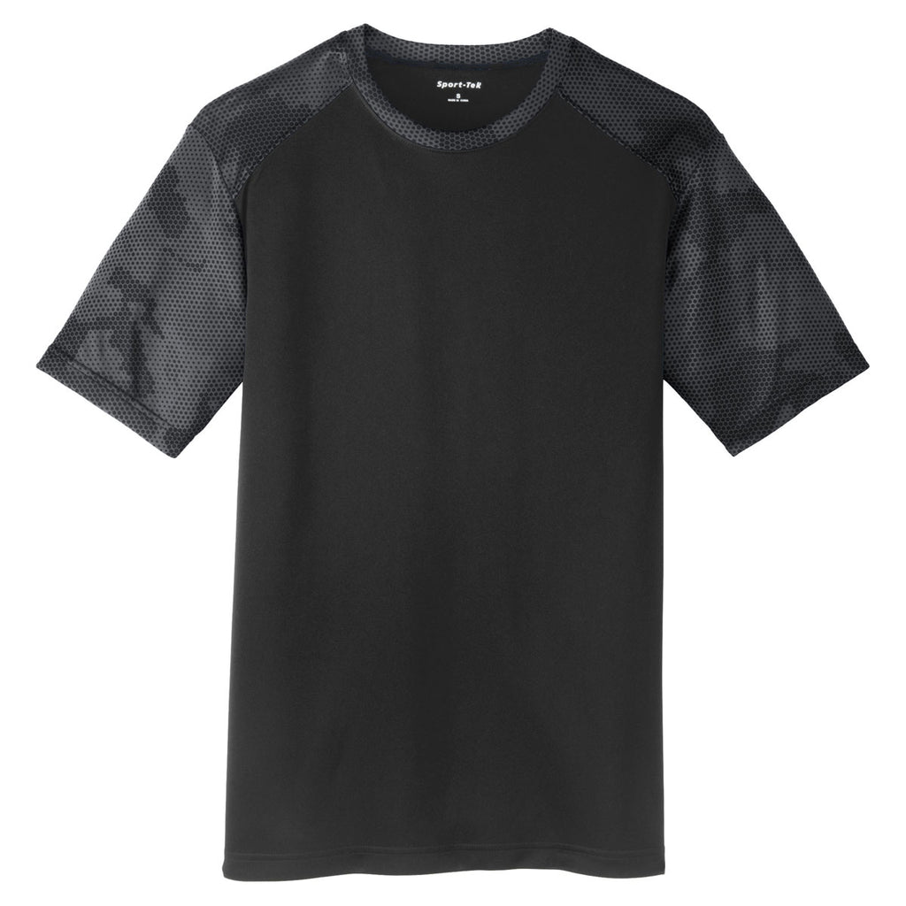 Sport-Tek Men's Black/Iron Grey CamoHex Colorblock Tee
