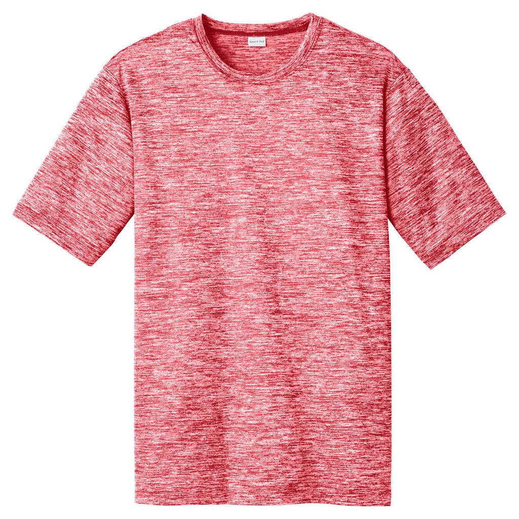 Do moisture laden t-shirts bog you down whenever you need to ramp up the competitive juices? Sport-Tek Men's Deep Red Electric PosiCharge Electric Heather Tee contain moisture wicking technology that quickly evaporates perspiration the instant it forms on your skin. The result is a cooling of the skin that invigorates your body. Set-in sleeves allow for more arm movement, which comes in handy on the golf course and tennis court. The super soft fabric endures countless wash and dry cycles, without any of the colors fading. One-hundred percent rugged polyester interlock resists rips and tears. Attach your company logo to the t-shirts to spread the word about your brand.Corresponding Women's Style: Sport-Tek Women's Deep Red Electric PosiCharge Electric Heather Sporty Tee