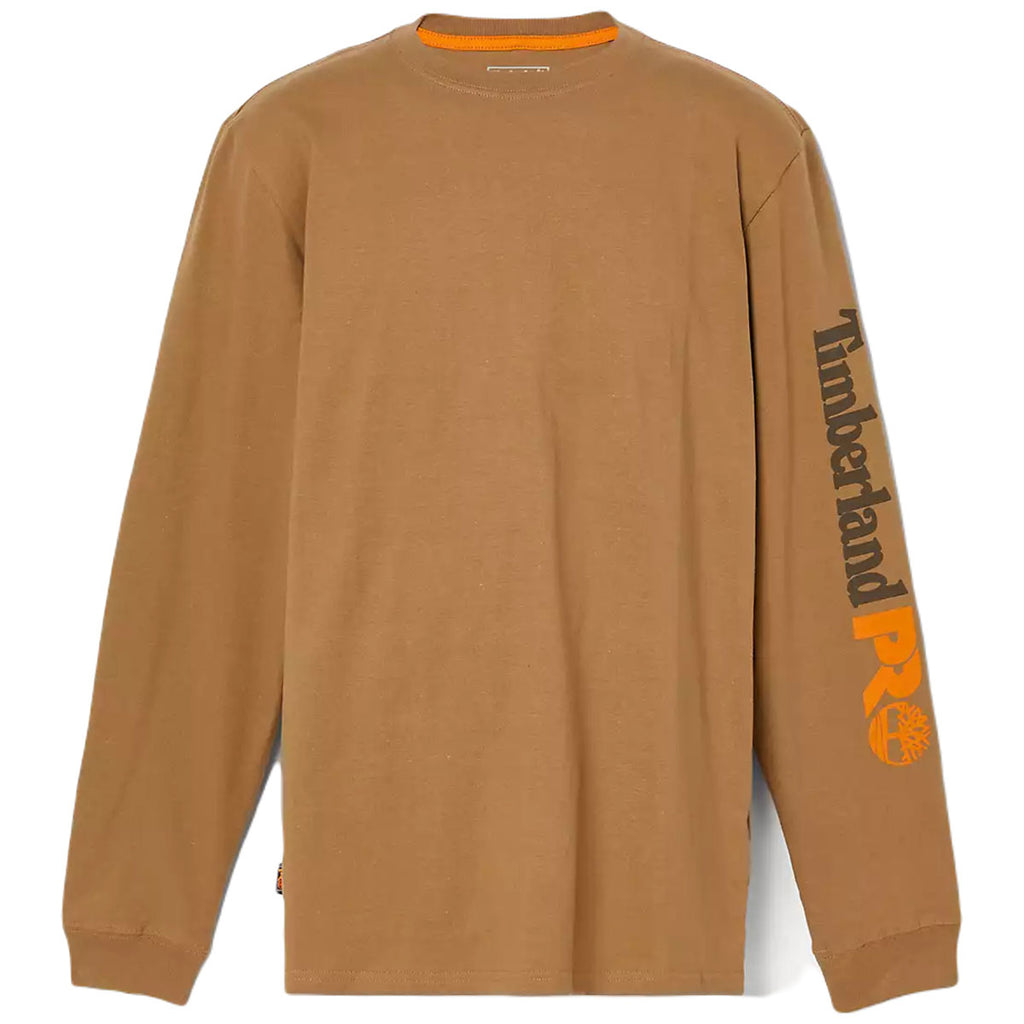Timberland Men's Dark Wheat Core Logo Long-Sleeve T-Shirt