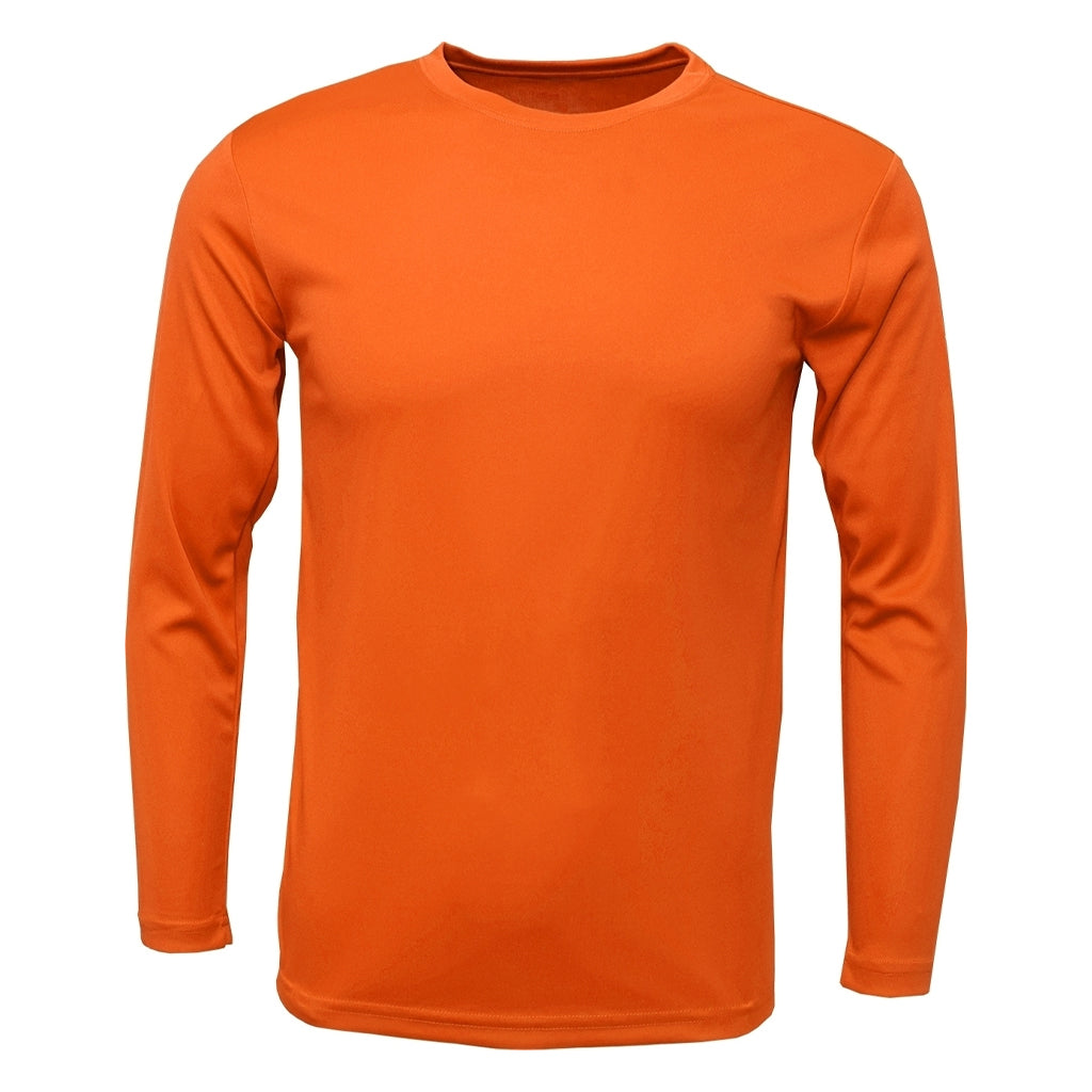 Not only will the BAW Men's Orange Xtreme Tek Long Sleeve Shirt fit into your promotional plans, it will fit the men to a "T" . Your custom logo will stand out on any one of the available colors from brown to bright green. It has a crew neck and double needle hems. The breathable polyester fits like a glove without sagging and bagging. It is ideal for corporate sponsorships, company events and give-away incentives. This is a handsome shirt that will be enhanced with your custom logo. Those who see someone wearing it will be sure to ask where it was received, and the wearer only has to point to his chest.Corresponding Women's Style: BAW Women's Orange Xtreme Tek Long Sleeve Shirt