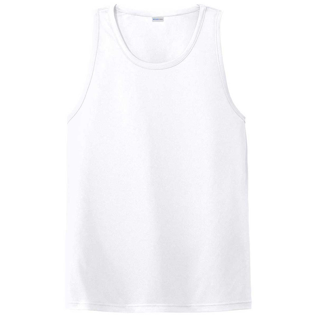 Hit the gym in a custom logo Sport-Tek Men's White PosiCharge Competitor Tank in a variety of bold and bright colors. The 100% polyester interlock is breathable and comfortable whether playing a pick-up game of basketball or participating in team events. This moisture wicking, value priced tank is perfect to serve as a jersey with a company or corporate logo created from heat transfer. Binding at the neck and armholes keep it in place as you play your hardest. PosiCharge technology also keeps the logo from fading over time to keep you and your teammates looking their best.Corresponding Women's Style: Sport-Tek Women's White PosiCharge Competitor Racerback Tank