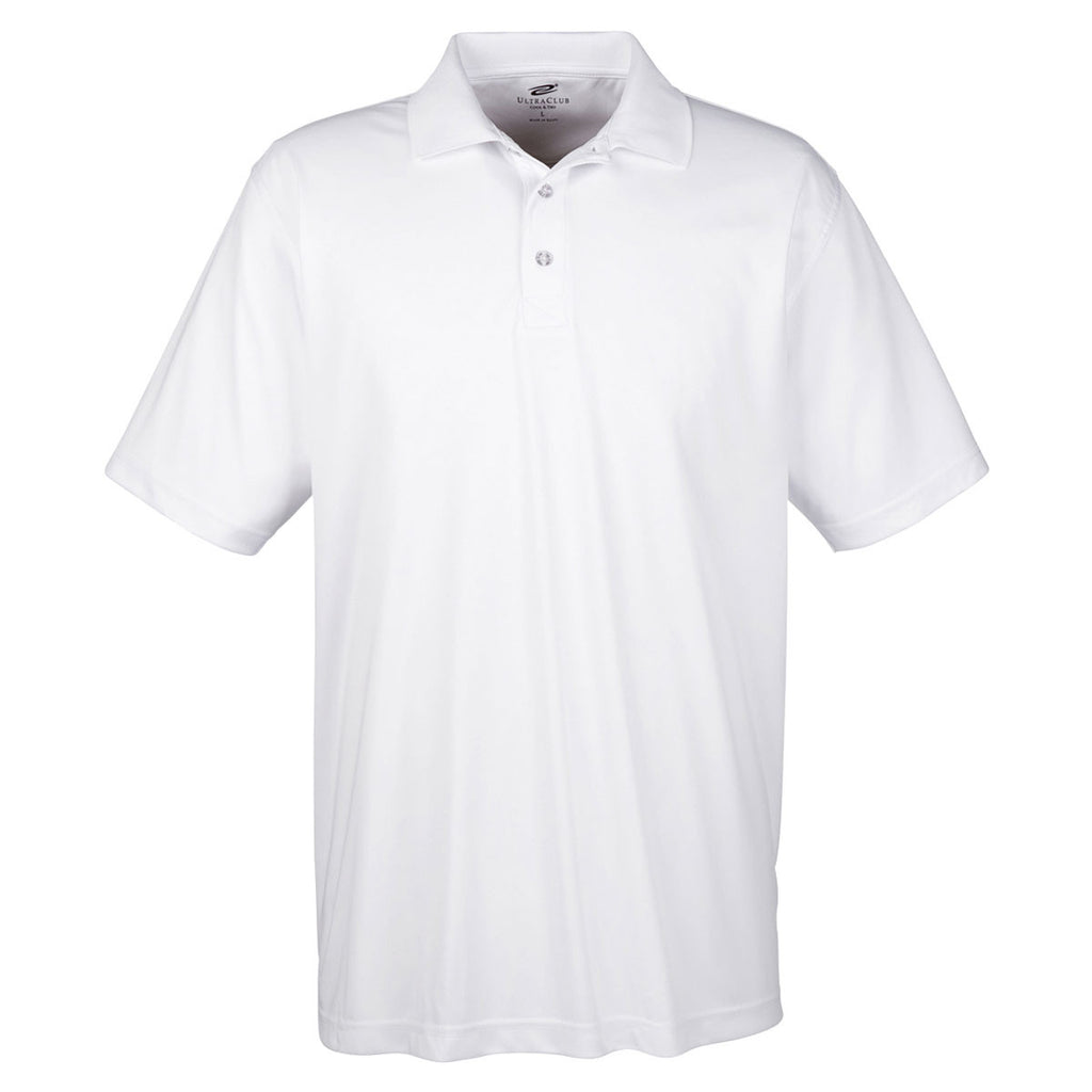 UltraClub Men's White Cool & Dry Sport Performance Interlock Polo