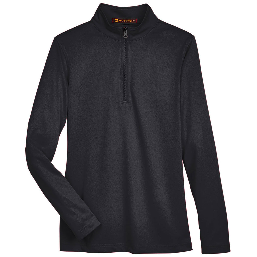 Ready to be part of women's custom logoed dress code in your company, the Harriton Women's Black Advantage Snag Protection Plus Quarter-Zip offers the best of form and function. It's a professional, comfortable and versatile promo item that's sure to garner impressions for your brand once embroidered with your company logo. Its moisture-wicking power wicks the sweat away from the skin to make for quick-dry and odor-free comfort all day. Designed with UV Protection for protection from the sun's rays making it perfect for anyone with a physical outdoor job. Constructed with an antimicrobial agent that keep bacteria at bay. Side vents ensure optimal breathability. Tested results prove it lasts up to 75 washes. Ideal for athletic and casual use and can be worn throughout the day and beyond.Corresponding Men's Style:Harriton Men's Black Advantage Snag Protection Plus Quarter-Zip