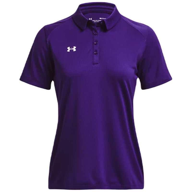 Add your company logo to the Under Armour Women's Purple/White Tech Team Polo for a classic corporate apparel look the women on your team will love to wear! With loose, textured fabric that breathes throughout the day, the corporate UA Tech polo for women helps deliver a comfortable feel with a clean-cut style. With your business logo embroidered clearly on the front, custom Under Armour polos for women can help your crew look united and ready for the day!
