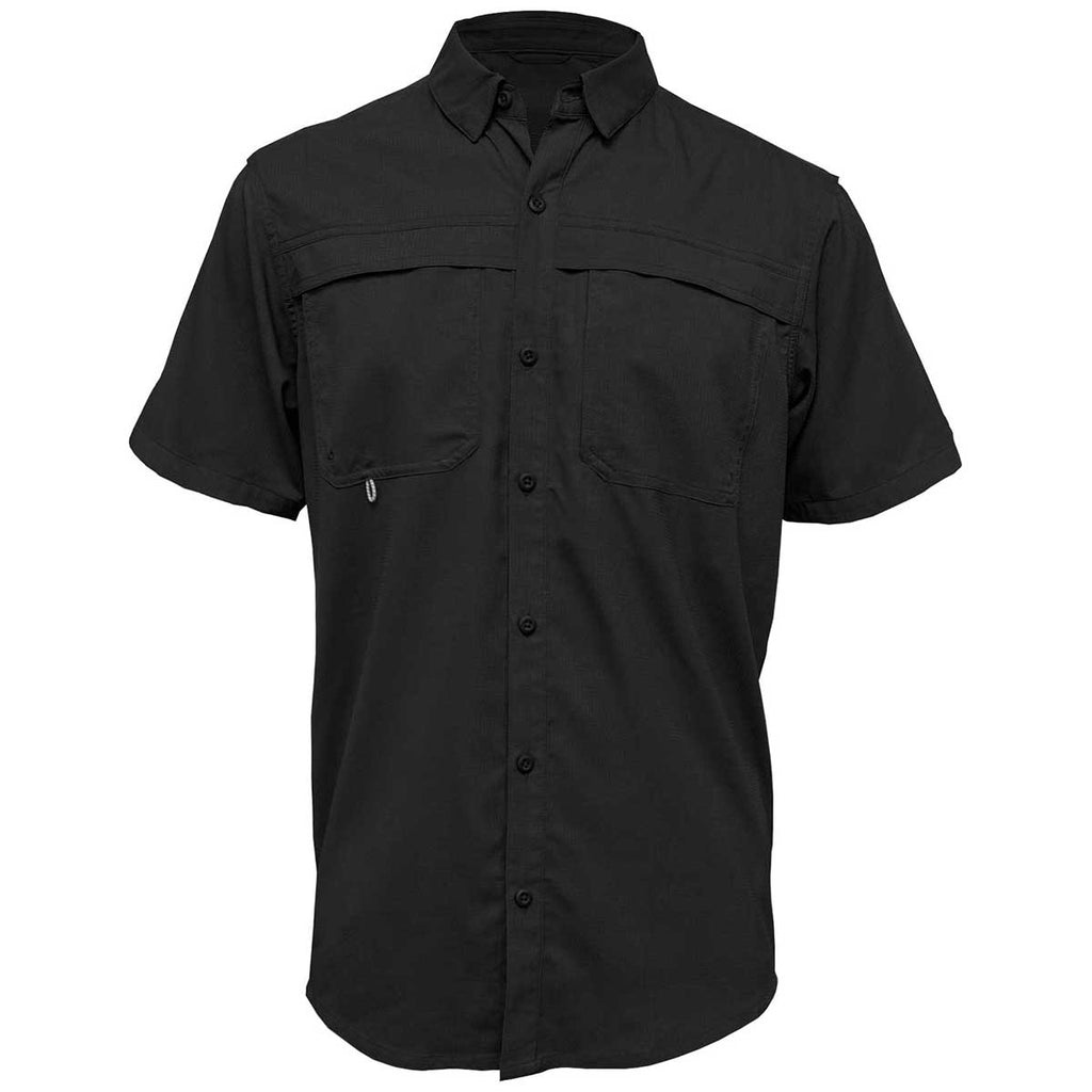 The BAW Men's Black Short Sleeve Fishing Shirt is perfect for a day out on the boat or a night out on the town. Available in 15 eye-catching colors, the fishing shirt also includes a wide array of features, such as a 100% micro polyester shell, 100% polyester lining, mesh-backed shoulder vents complete with hook and loop, button-down collar, side seam pocket, and UPF 50+ sun protection. When you add an embroidery company logo, you have the perfect gift to hand out to your team members as employee apparel.Highlights