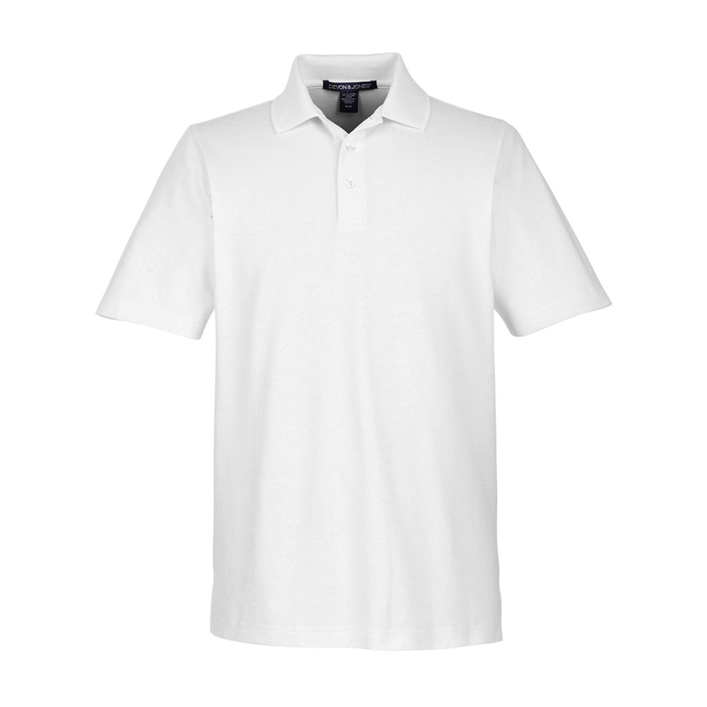 Before the next company golf outing, order the embroidered Devon & Jones Men's White CrownLux Performance Polo for the male members of your team. The front of the stylish polo contains 100% durable polyester, while the back side enjoys a cotton and polyester blend to enhance comfort. Moisture wicking technology keeps the skin dry and cool throughout every round. The matching flat knit collar will attract the attention of fellow players. Take advantage of the attention by adding a custom logo on the large imprint area. Dyed-to-match buttons exude panache to make the polo your go to corporate apparel for outdoor recreational activities.