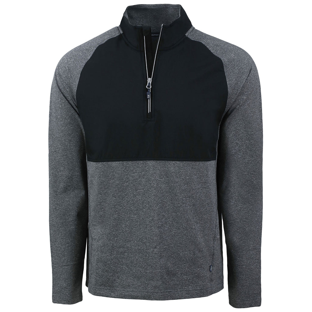 Cutter & Buck Men's Black Heather/Black Adapt Eco Knit Hybrid Recycled Quarter Zip