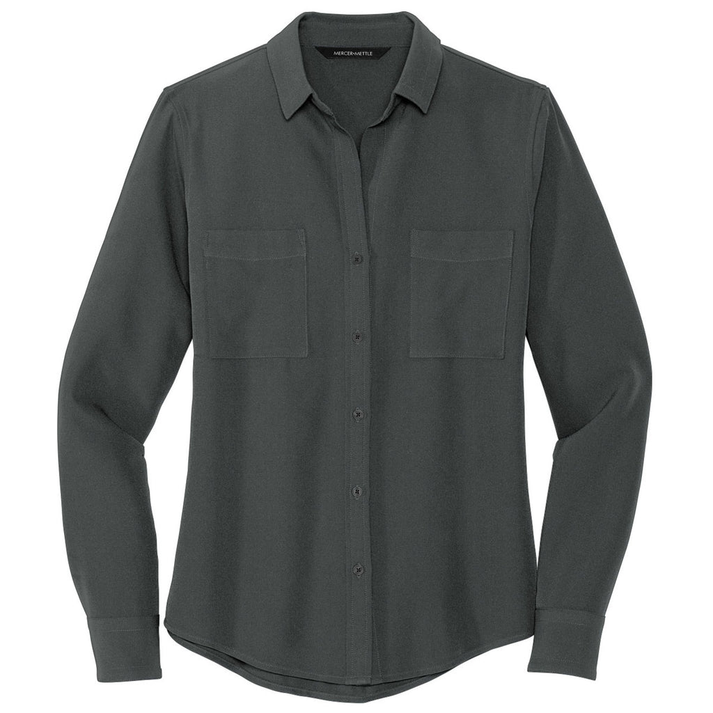 Mercer+Mettle Women's Anchor Grey Stretch Crepe Long Sleeve Camp Blouse