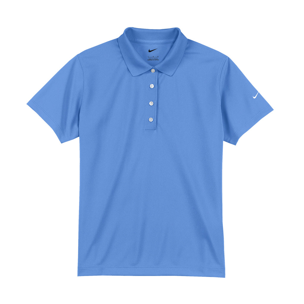 Love the sporty look of the Nike Women's University Blue Tech Basic Dri-FIT Short Sleeve Polo? Well, you'll like how it feels and how it fits even more. The Nike Golf Women's University Blue Tech Basic Dri-FIT Polo features 100% moisture-wicking polyester fabric, a knit collar, a 4-button placket, open-hem sleeves and pearlized buttons. To finish off the look, the classic Nike Golf Swoosh logo is embroidered on the left sleeve.