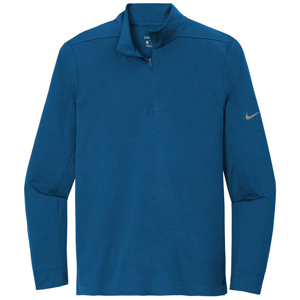 Hit the gym or the track in a custom embroidered Nike Men's Gym Blue Half Zip Cover-Up. This sleek cover-up stands out with a hex texture interior and subtle exterior texture that provides the ideal layer for warm ups and cool downs. Easily layer this embroidered cover-up to add a team name for team events or to use as part of a company uniform. The Dri-FIT management technology helps keep you dry as you stay in shape in the 100% polyester fabric that will be a hit for those that like to workout or those who prefer a more relaxed lifestyle. Add your company logo to use these as end of the year gifts for all you care about in life.