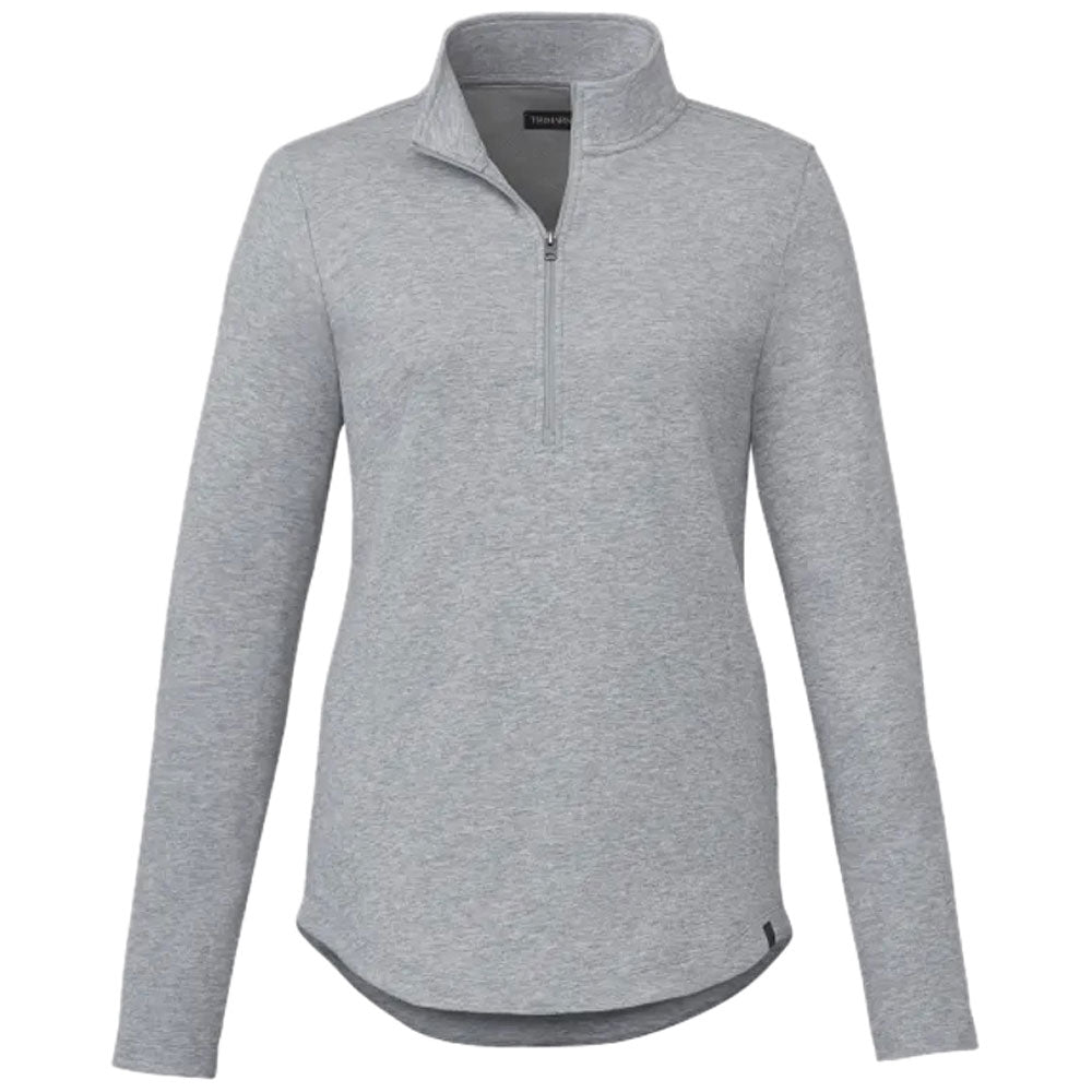 Up your style game with a custom Elevate Women's Heather Grey Rigi Eco Knit Quarter Zip that offers a shirt-tail hem and tapered waist to create a flattering fit. Add a corporate logo to the eco-friendly quarter zip to use as a uniform or employee gift. Try a custom logo to enjoy a look that can go anywhere as part of a layered option that will keep you looking and feeling great. Order today.Corresponding Men's Style: Elevate Men's Heather Grey Rigi Eco Knit Quarter Zip