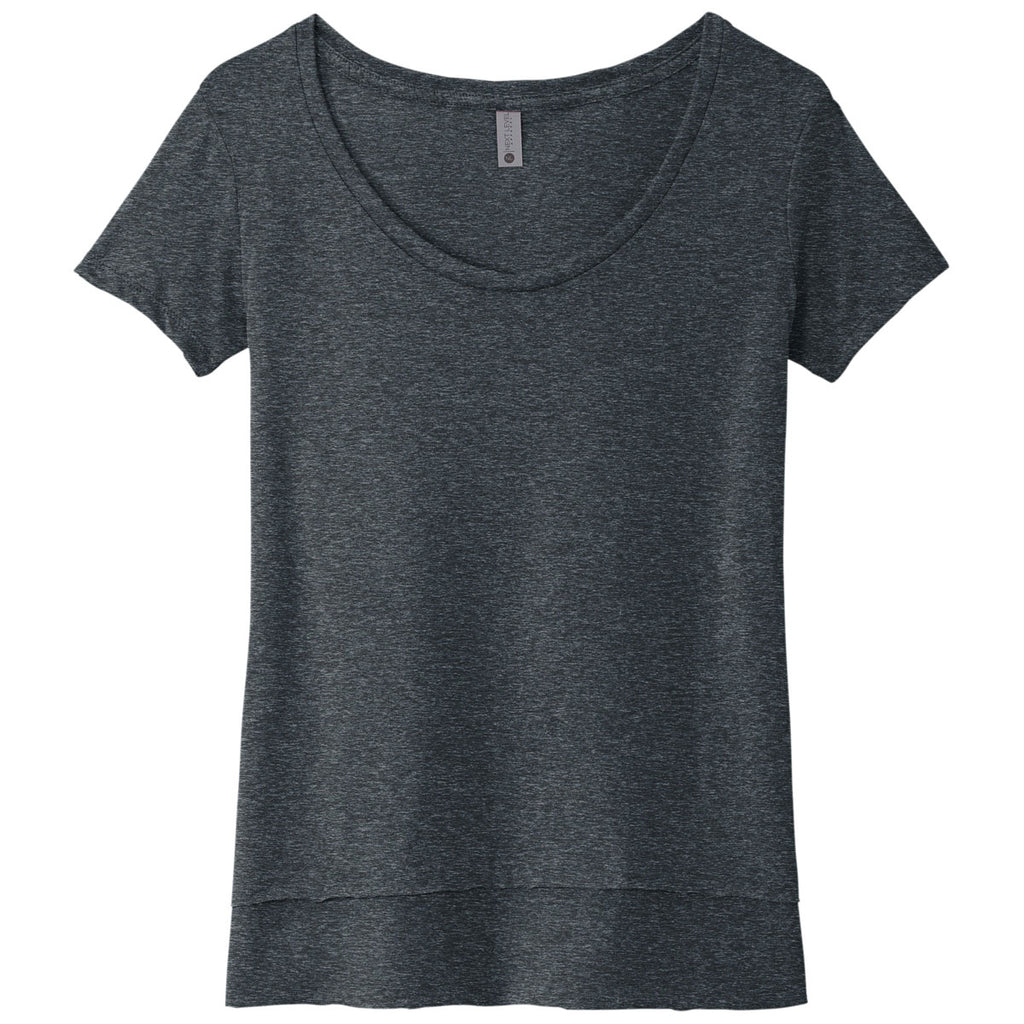 Amp up your tee collection with a custom Next Level Women's Antique Denim Festival Scoop Neck Tee. This takes the simple tee to the nest level with a scoop neck cut that provides flair. Add a company logo to use this as employee apparel or for some special employee event used for team or company building. Try out a custom logo to use for a team, organization, club, or just to add to your own wardrobe. The poly and ring spun cotton blend is soft, comfortable, and wearable with rib knit scoop neck and a relaxed fit. The raw edge creates an exaggerated drop tail hem for extra coverage.Highlights