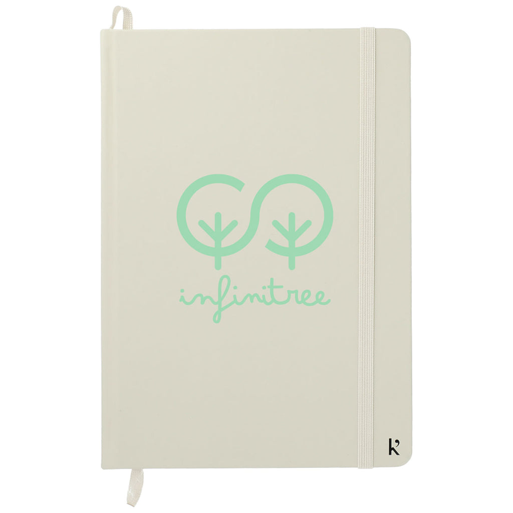 Karst Beige Stone Bound Notebook "5.5 x 8.5" with logoed screen print is the perfect addition to every employee welcome package. This notebook is designed for the most creative among us with a water-resistant hard cover, 72 sheets of white stone lined pages, a ribbon page marker, and a back document pocket. Add a custom logo to the front cover to use at trade shows or as an event giveaway for a contest or fundraising program. Once used, the notebook is recyclable if needed, but this will be a way people save thoughts and ideas that inspire. Place an order today for this versatile notebook.