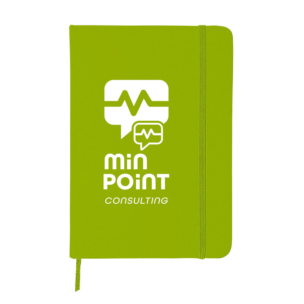 Your company's custom logo will make a statement when it's added to the front of this Primeline Lime Green Comfort Touch Bound Journal - 5" x 7". Available in a vibrant array of color options, this customizable notebook includes 80 lined sheets of paper as well as a ribbon bookmark to keep your place.The minimum order for this product is 100 pieces.