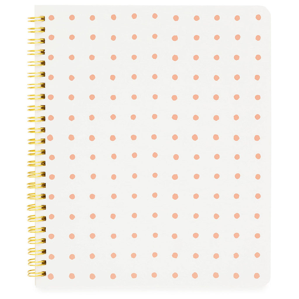 Take your workspace to the next level by adding your company's custom logo to the Sugar Paper Spiral Notebook, Rose Dot. Along with a stylish patterned cover, this notebook measures 8.5" long, 7" wide, and comes complete with awesome extras like 50 lined pages, golden spiral binding, and foil detailing throughout.