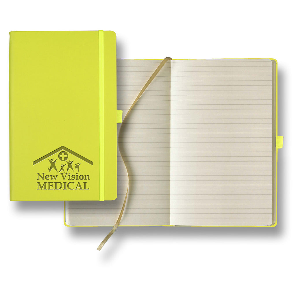 Tucson Medium Ivory journal flaunts a well-earned reputation for its stately silhouette courtesy of 240 gray-lined pages of Ivory paper and leather-like cover. This notebook will deliver a clear message to its recipients: "I mean business." It can be customized with debossing or foil detail of your custom logo.