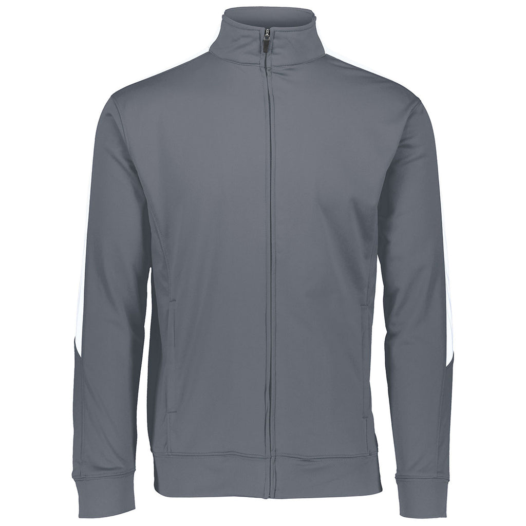 Augusta Sportswear Men's Graphite/White Medalist Jacket 2.0 will carry your custom logo like a winner. The high collar full-zip has a partial stripe down each sleeve for flair. Add a corporate logo to give as gifts or incentives to get or stay healthy as a company. Great for workouts, daily wear, or just to stay warm on a chilly day. Place an order today.Highlights