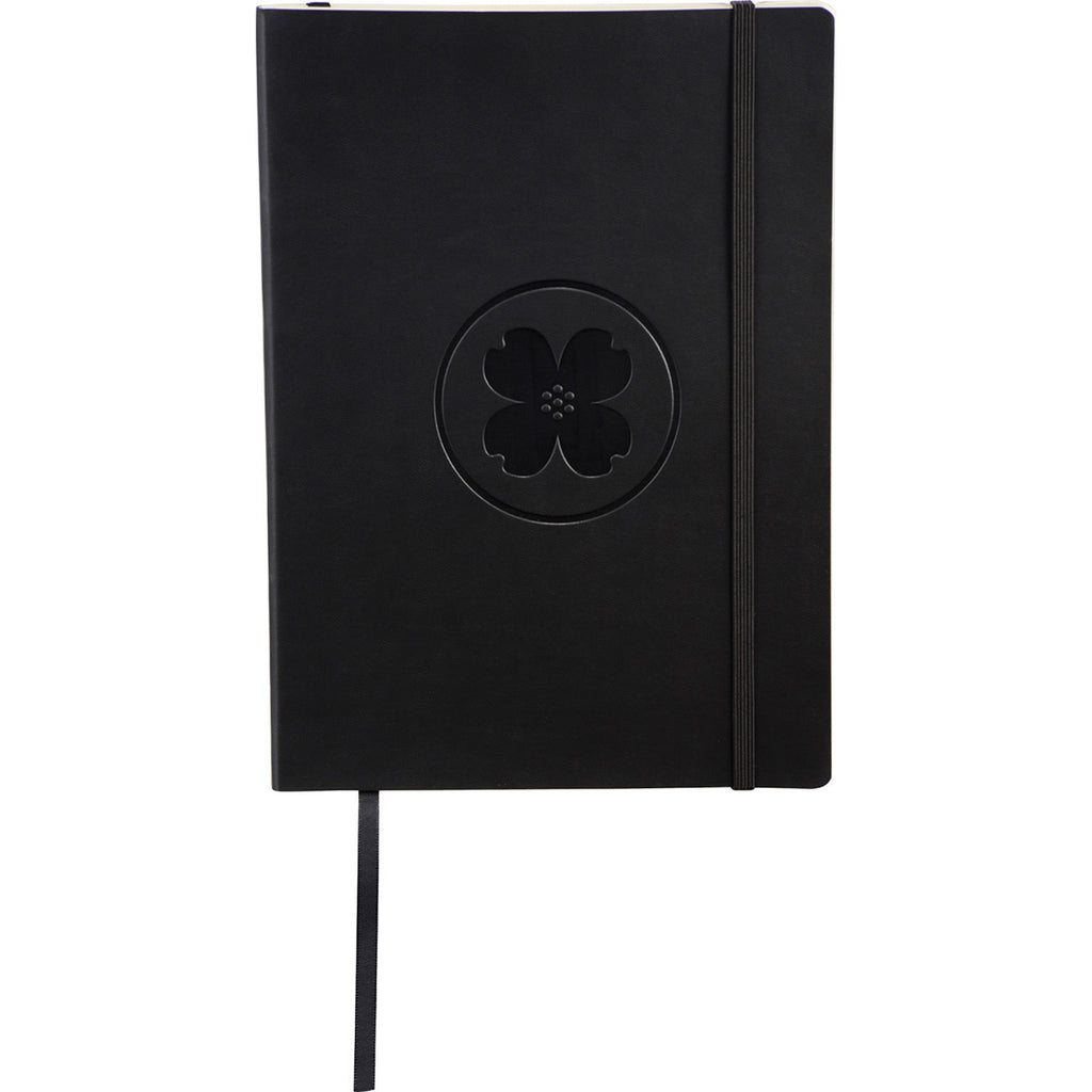 The minimum order for this product is 48 piecesThis JournalBooks Black Pedova Large Ultra Soft Bound bold design is the ultimate choice for companies looking to make a statement with custom logoed corporate swag. The cover is flexible and soft, serving as a malleable slate for creativity. It comes with an elastic closure, ribbon page marker, document pocket and 80 sheets of cream lined paper.