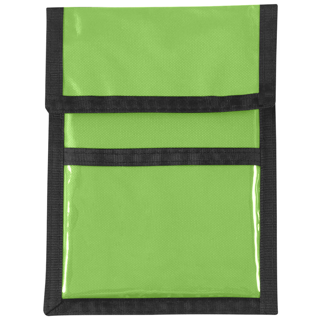 Design a corporate logo for the Hit Lime Green Nylon Neck Wallet Badge Holder to keep your ID and other small items safe and secure. These easy-to-wear holders are ideal for conferences or special organizational events when carrying a wallet or purse is inconvenient. Place your badge in the see-thru pouch and your cards or money in the other sections.
