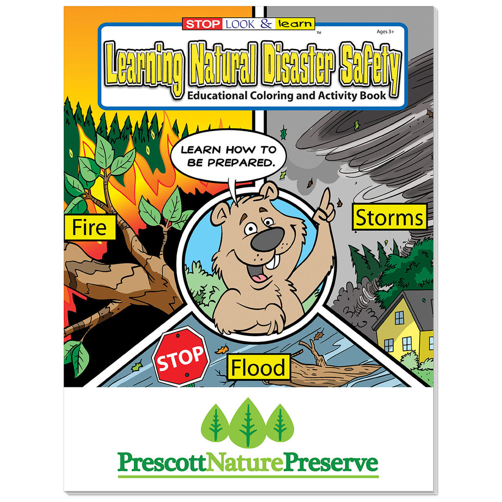 The custom Koozie Group White Coloring Book: Learning Natural Disaster Safety educates children on how to stay safe during natural disasters like earthquakes, floods, and hurricanes. Perfect for schools, emergency preparedness programs, or safety industry businesses, it provides fun and important lessons. This educational book is also a valuable resource for families and personal use.The minimum order for this product is 500 pieces.