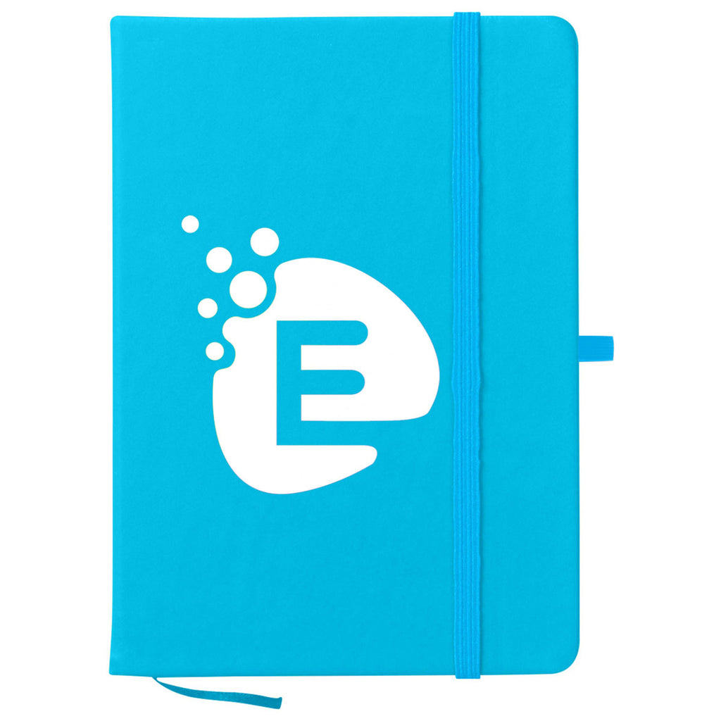 The Hit Light Blue Journal Notebook with a custom logo will be an instant Hit for those who like to keep their thoughts on paper. The 80 page notebook is lined for easy tracking of your journal entries. A polyurethane cover means this notebook can be used repeatedly with the matching bookmark, strap closure, and pen loop to help with organization.