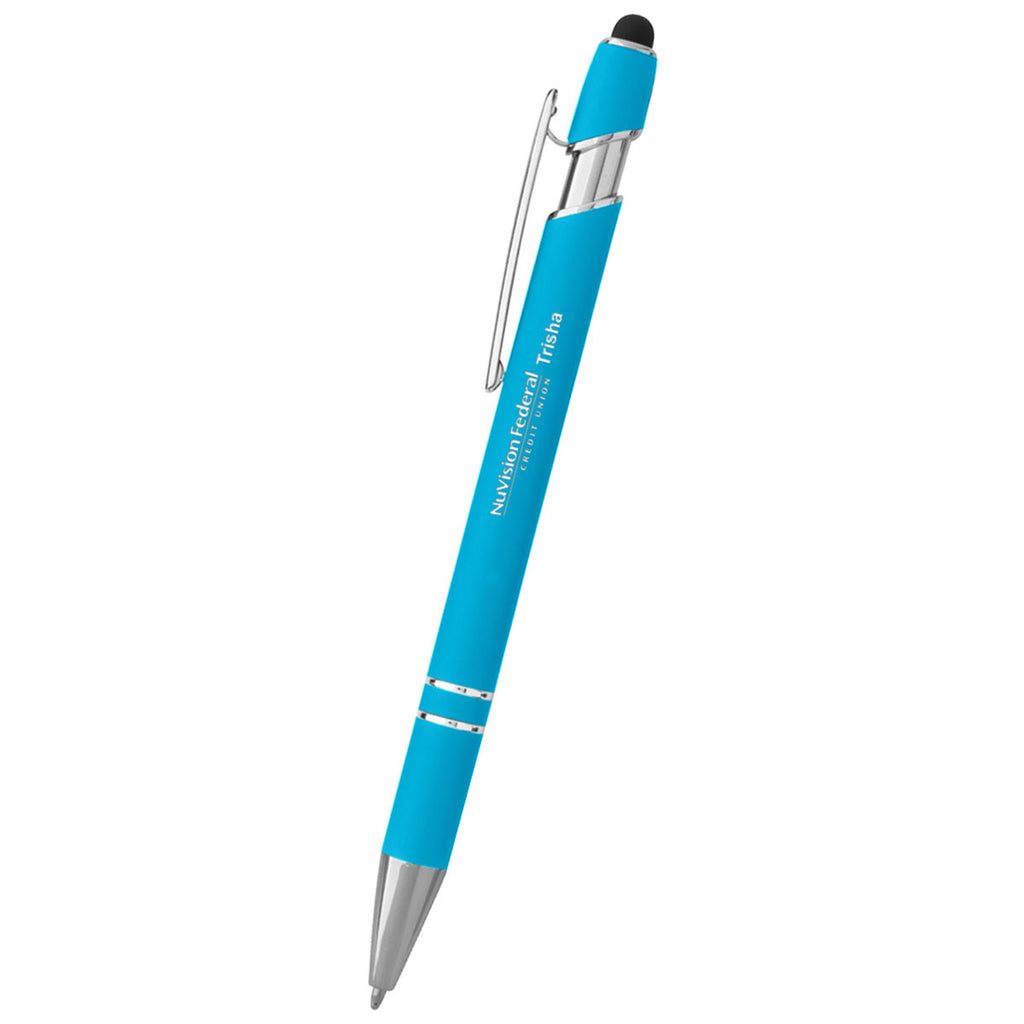 Hit Light Blue Incline Stylus Pen with a corporate logo comes in a variety of colors to fit your supply needs. The stylish pen serves the dual purposes of writing and serving as a stylus while coming in a convenient gift pouch for easy gift-giving. Great for new clients, graduations, or special events while networking.