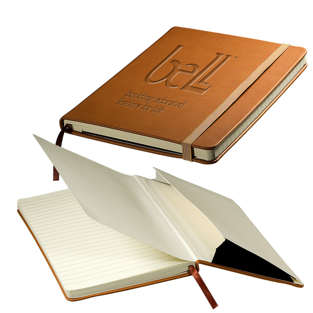 The minimum order for this product is 25 piecesHow do you reward the dedication and high-performance standards set by your team? The Leeman Tan Tuscany Journal represents a thoughtful corporate gift with the added bonus of including 3.25" wide by 3" tall imprint area to add your company logo. Now you have a cost-effective marketing tool that gets the word out about your brand. Rich faux leather and a polyester band ensure the Tuscany Journal enjoys a long product life. The elastic lop closure secures the 80 ruled pages that allow you to take notes during business meetings.