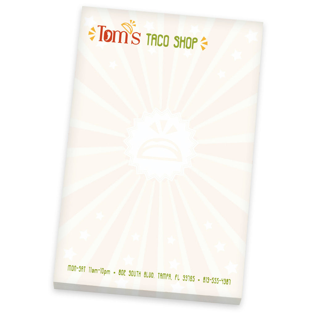 Add a custom logo to the Souvenir 4" x 6" Scratch Pad, 50 Sheet, to create a simple-to-use and share essential for every home and office. We all need a scratch pad at different times throughout the week, so why not include one with your custom design? Great as part of a gift and a home or office essential. Order today.The minimum order for this product is 250 pieces.