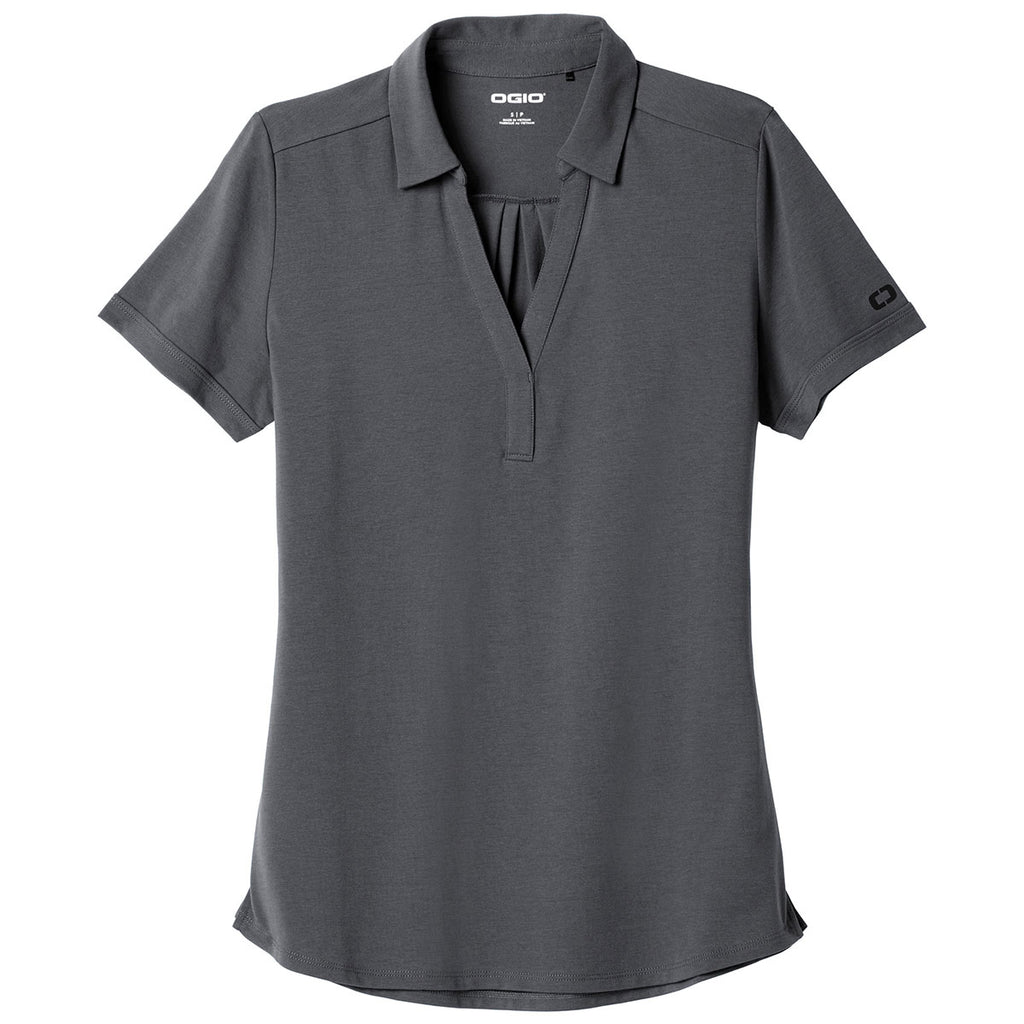 Make a lasting impression on customers by ordering the custom logoed OGIO Women's Diesel Grey Limit Polo for the members of your corporate team. As one of the most stylish short sleeve shirts for employee uniforms, the cotton and polyester blended polo withstands the rigors of frequent use to deliver years of fashionable performance. Stylish open Y-neck placket exudes class, while the set-on, cuffed sleeves allow for optimal arm movement flexibility. Moisture wicking technology ensures maximum comfort throughout every workday. Attach your company logo on the large screen embroidered area to power your brand to the top of the competition.
