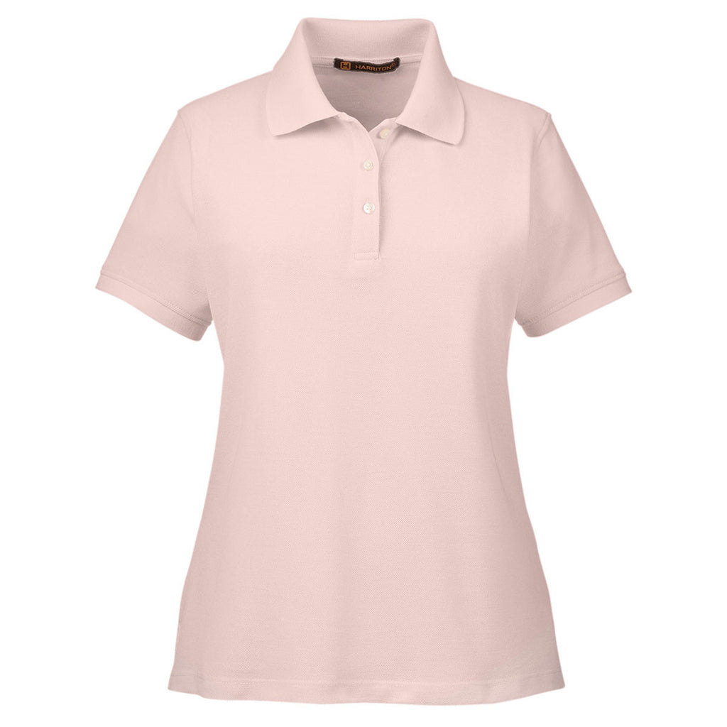 The combination of cotton and polyester creates a silky hand fabrication that reduces the shrinkage of the Harriton Women's Blush 5 oz. Blend-Tek Polo. Soil release properties make the popular polo the perfect corporate apparel to wear during company softball games. Just make sure to add your corporate logo to let the other team know about your commitment to the delivery of high-quality products and services. Moisture wicking technology evaporates sweat that builds up on the skin to produce a comfortable cooling effect. You never have to deal with unsightly wrinkles, even after countless wash and dry cycles.Highlights