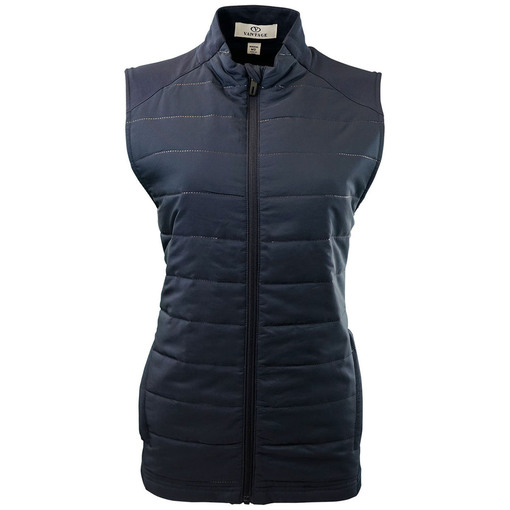 Choose your embroidery for the Vantage Women's Navy Ninja Vest to create a comfortable and functional look that is ready for adventure. The quilted vest is ideal for hiking, biking, or the morning commute. The full zip front makes this easy to layer over your favorite long-sleeve tee or sweater as needed. Order today.