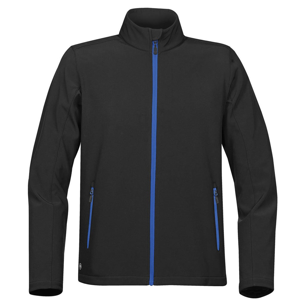 The Stormtech Men's Black/Azure Blue Orbiter Softshell is an ideal corporate gift thanks to its versatile design that allows it to be worn by almost anyone and every day. It offers room for your company logo and the high contrast zippers are sure to help call attention to your brand. Wearers will appreciate that it offers lightweight protection from the elements. Several zippered pockets with a brushed tricot lining offer places to stash everyday items, including sunglasses and phone, without fear of scratching. Wearers will also love the chin saver and soft fleece backing that add comfort and warmth.Corresponding Women's Style: Stormtech Women's Black/Azure Blue Orbiter Softshell