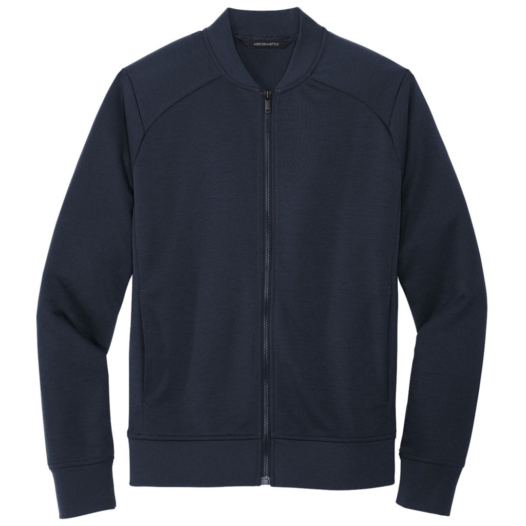 Choose your custom logo for the Mercer+Mettle Men's Night Navy Double-Knit Bomber to complete the smart, stylish look that this bomber creates. The easy care bomber is great to create a casual and cool attitude in a streamlined fit. Designed like a traditional bomber in a lightweight polyester, this is a fun addition to any wardrobe. Place an order today.Corresponding Women's Style: Mercer+Mettle Women's Night Navy Double-Knit Bomber