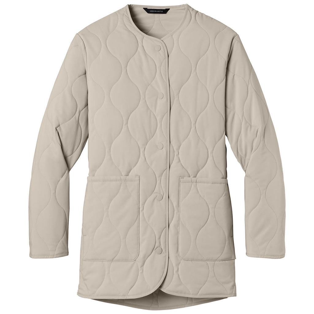 Custom embroidery turns the Mercer+Mettle Women's Almond Quilted Liner Jacket into a polished corporate apparel option. Lightweight yet warm, it layers easily and delivers a flattering fit. Add your logo to create a professional branded jacket that works well for employee uniforms, seasonal gifting, or client appreciation. Stylish and functional, it ensures your brand looks sharp.Corresponding Men's Style: Mercer+Mettle Men's Almond Quilted Liner Jacket