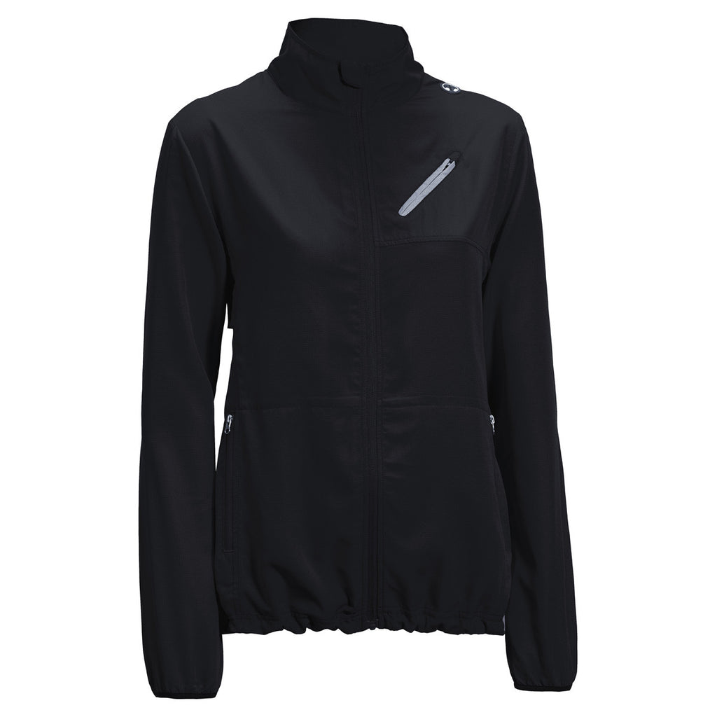 Zip past all runners on the track in Expert's Expert Women's Black Run Away Jacket that will keep you cozy during your all your outdoor regimen. It's styled in a comfortable fit and features secure side zipper pockets. A drop tail in the back ensures extended coverage. Other features include Headphone loophole, reflective detail, hook tape closure, elastic sleeve hem, and antimicrobial properties. Crafted from lightweight microfiber poly woven. Get it with your custom logo print to bolster your brand visibility.The minimum order for this product is 12 pieces.