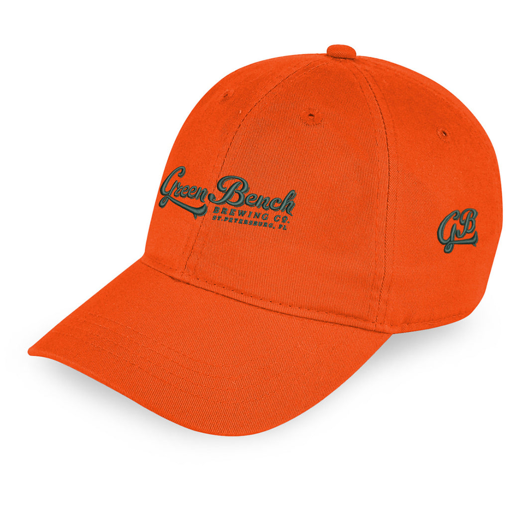 Merrimack Hat Co. Orange Cooper Cap with a custom logo is a creative way to showcase your organization, style, or logoed apparel line. Great for wearing while golfing, playing ball, or just hanging out, this hat has unstructured panels, a curved brim, and a low crown. The self-fabric strap with antique brass buckle closure allows for a one-size-fits-most design.