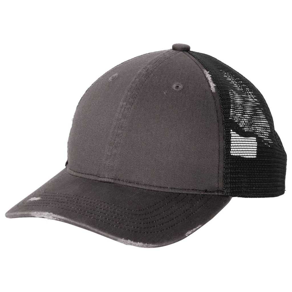 Port Authority Grey Steel/ Black Distressed Mesh Back Cap