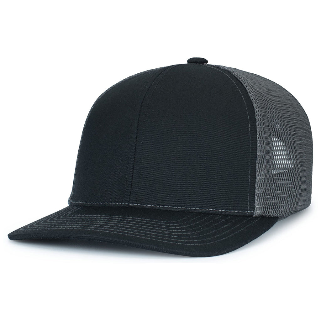 Add your corporate logo to the Pacific Headwear Black/Graphite/BlackContrast Stitch Trucker Pacflex Snapback Cap for a fun and simple way to showcase your brand. The iconic trucker cap is a one-size-fits-most adjustable design with mesh backing, a mid-profile, and a curved visor that is easy to wear and share, whether at a trade show, special event, or to increase customer relations. Order today.Highlights